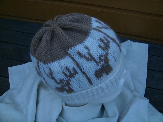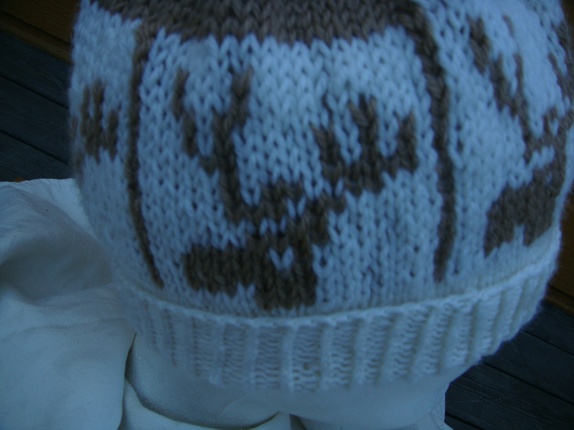 Luen er strikket ii hvitt og beige Per Gynt garn( 100% ren ny ull)