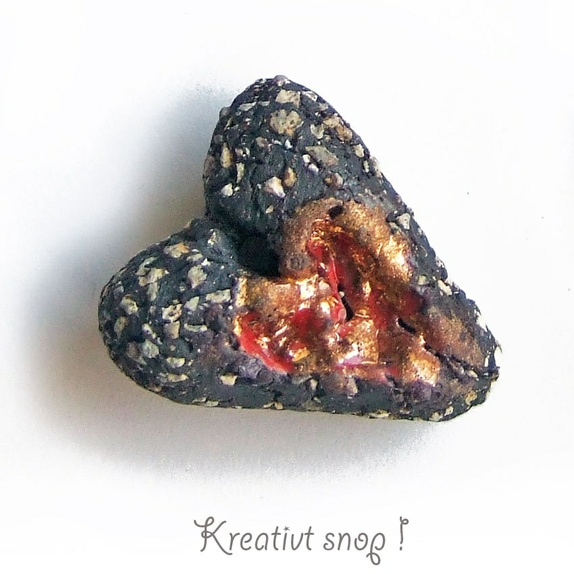 Et ehrlig smykkehjerte eller veskelåshjerte i African Stone, en sortbrennende leire, høybrent.