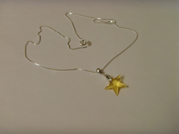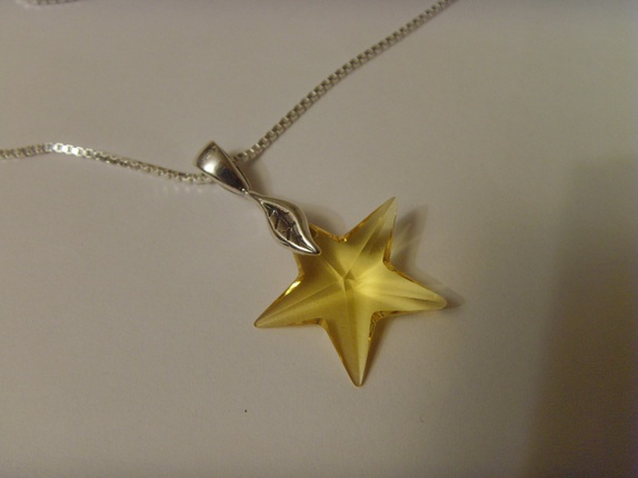 Meget enkelt og elegant smykke i 925s sølv. Stjernen er i fargen Light Topaz, som er en nærmest gul farge. Opphenget er også i 925s sølv.