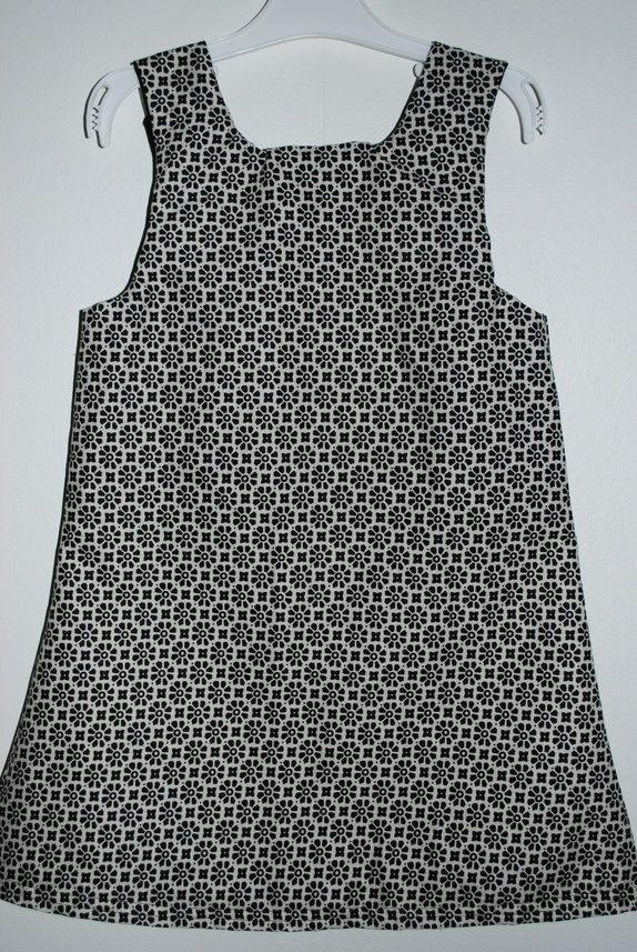 Spencer kjole str. 2-3 år i sort og hvitt mønster, med påsydde knapper og silkebånd.Originalpris kr. 255,-