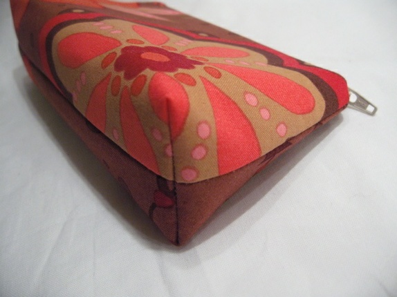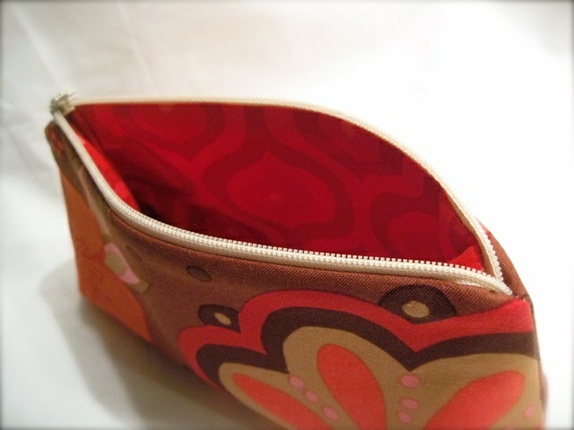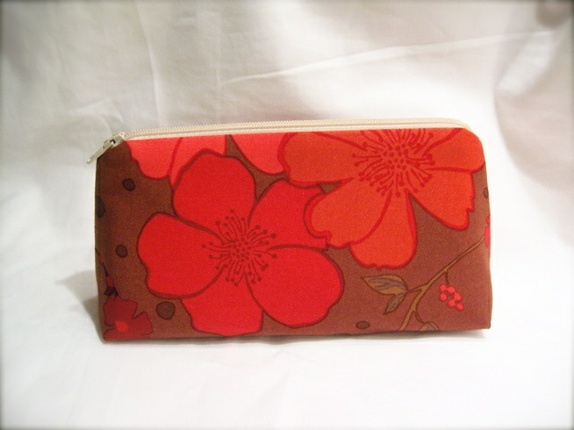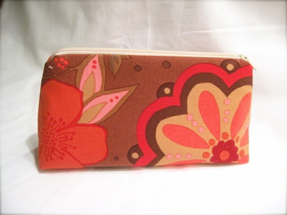 Enkel og elegant pung med plass til en del kosmetikk. I mettede farger i brunt og rødt.