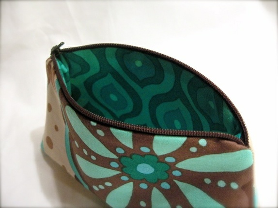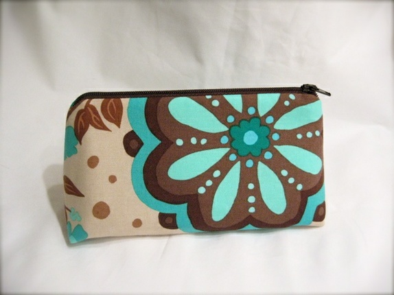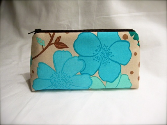Enkel og elegant pung med plass til en del kosmetikk. I mettede farger i blått, turkis og brunt.