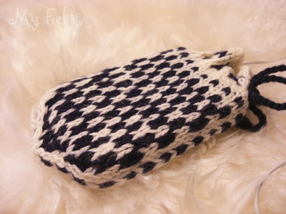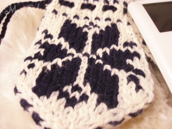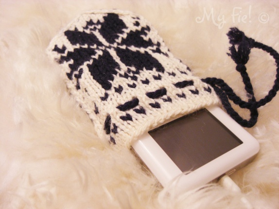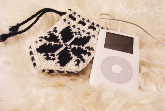Denne mobilvotten med Selbumønster er håndstrikka i 100% norsk ull. En cozy vott til å holde din iPhone, mobiltelefon, iPod classic eller kamera varm.