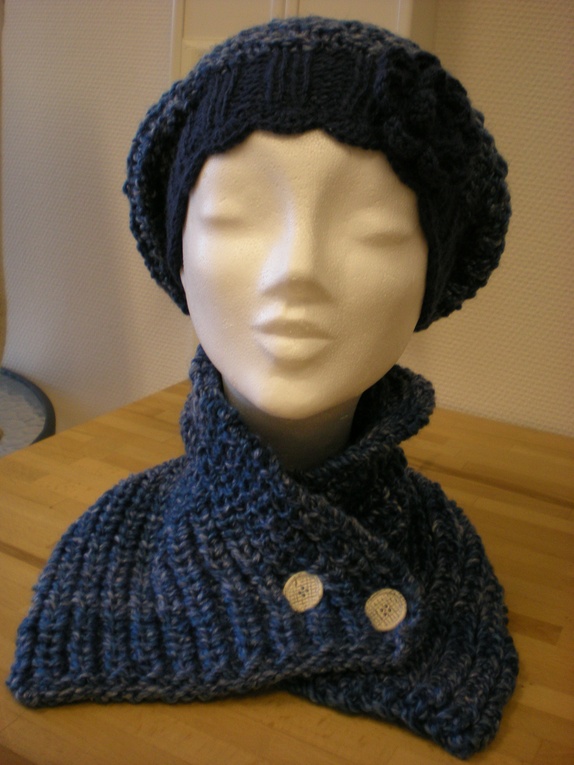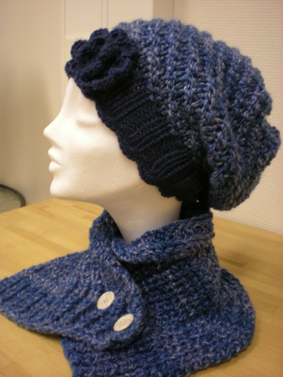 Farger er dessverre biltt for mørkt på bilder som viser både hals og lue samtidig, Vranborden på luen er Jeansblå (lysere og mer klar blå).