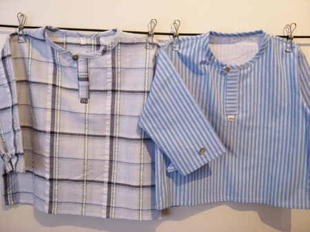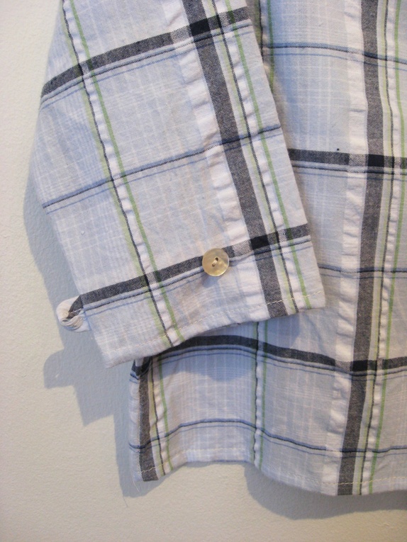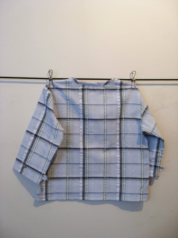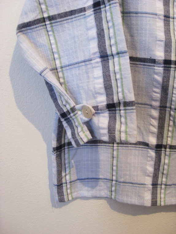 Tøff rutete skjorte til guttene i hvitt, ulike blåfargerog med en grønn strek. Skjorta har en enkel stolpelukning foran. På ermet er det knapp og hempe slik at det kan strammes. En skjorte med ledig passform som er fin til både hverdag og fest.