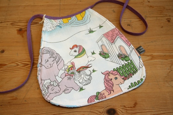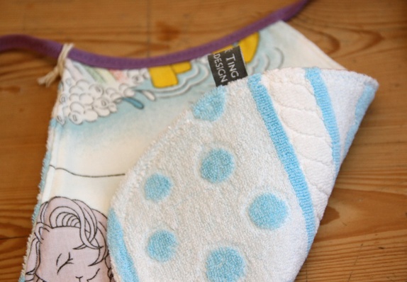 Søt smekke laget av redesignet bomullsstoff - tykk og god med frotté på baksiden. Ensfarget snor i halsen som matcher smekka.