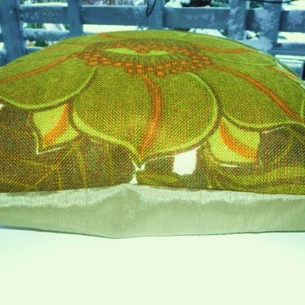 Putetrekk av stoff fra 70 tallet .Putetrekk har konvotutt opning,baksiden i stoff i machende polyester