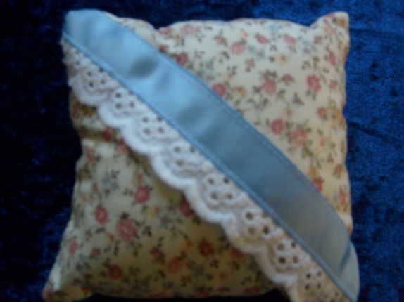 Sydd i pene bomullstoffer og pyntet med "silke"-bånd og blonder