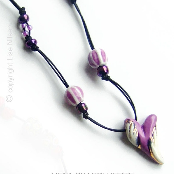 Et unikt og håndlaget smykke, hjertet er unikt, de lages et og et for hånd.Det er brent fast gull på porselenet.