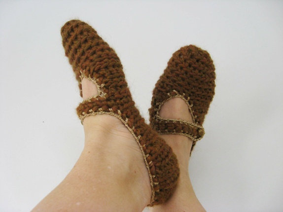 I og med at de er heklet, er de elastiske og former seg etter foten.