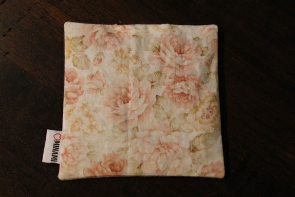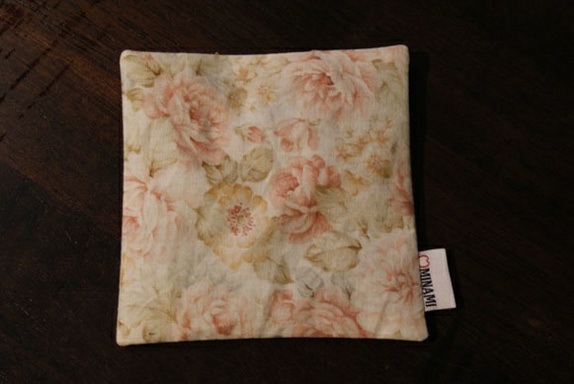 Fargen på lavendelposen går i duse romantiske farger med blomster. Det er brukt samme stoff på begge sider.