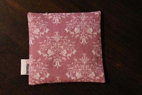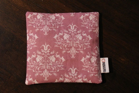 Fargen på lavendelposen er gammelrosa med motiv i lysere rosa. Det er brukt samme stoff på begge sider.