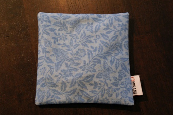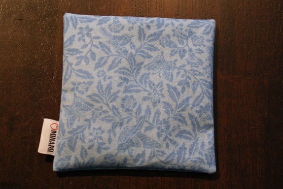 Fargen på lavendelposen er lys blå med motiv av blomster i mørkere blå. Det er brukt samme stoff på begge sider.