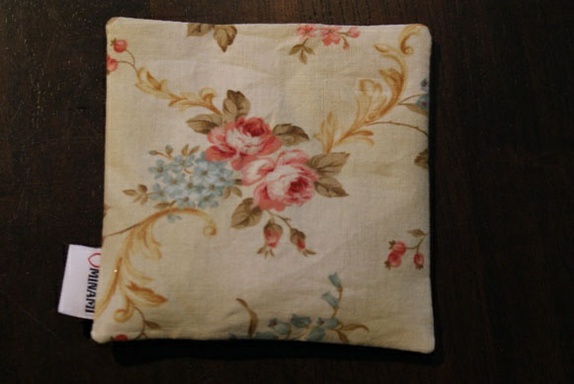 Fargen på lavendelposen er beige i bunnfarge med motiv av blomster i romantiske farger. Det er brukt samme stoff på begge sider.