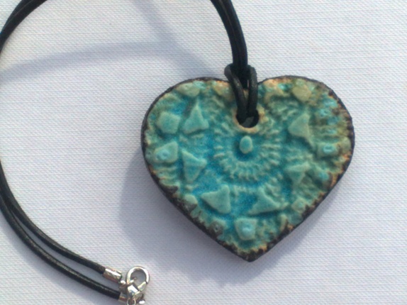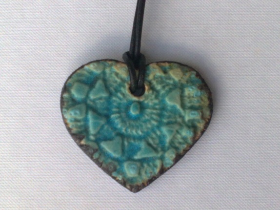 Håndlaget hjerte er laget i keramikk.Glasert i fargen turkis.