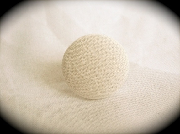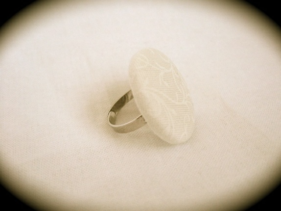 En ring i kremfarge med mønster i hvit. Diameter er 2,8 cm. Justerbar.