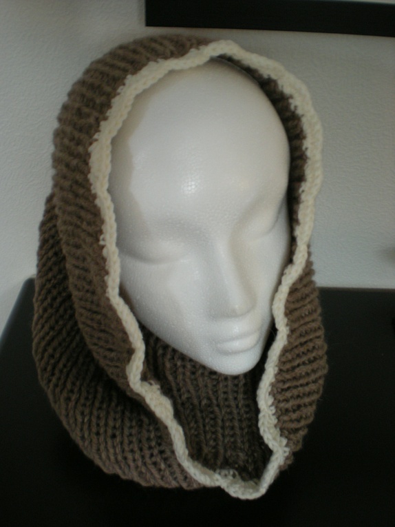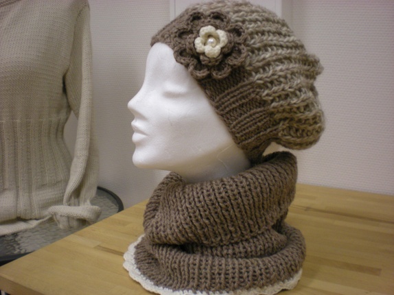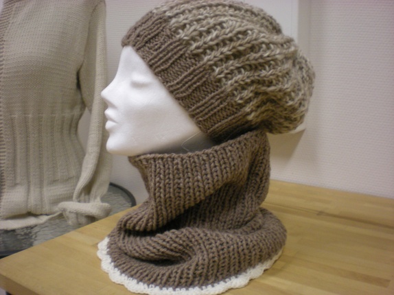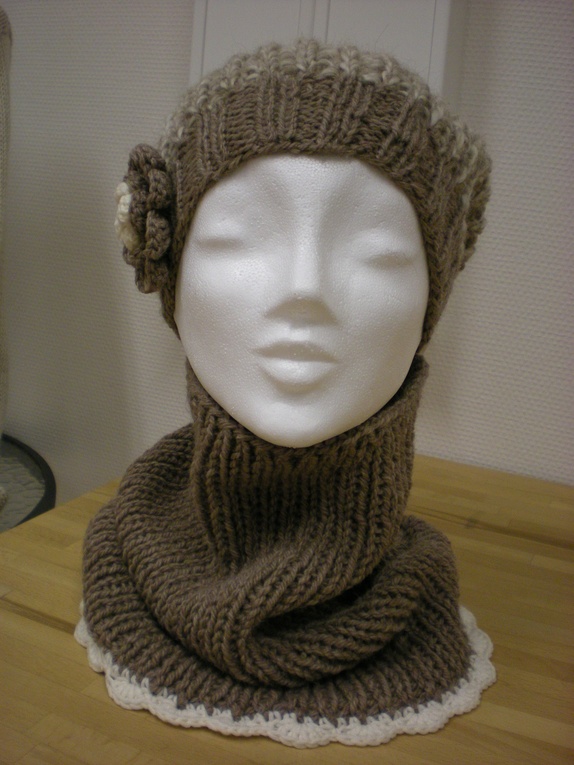 Hals er strikket i Nepalgarn fra Drops Design, 65%ull og 35% alpaca, deilig og myk.