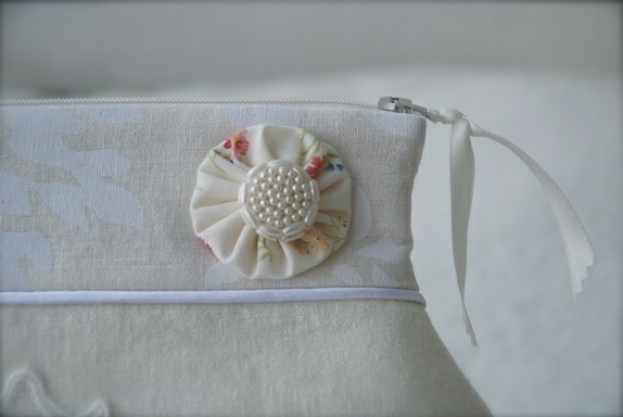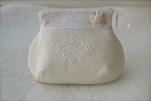 - Romsling pung eller veske, laget i fløtefarget lin i en lett kvalitet.