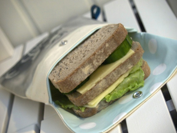 Denne matpakkeposen rommer tre brødskiver og en medium gulrot :-)