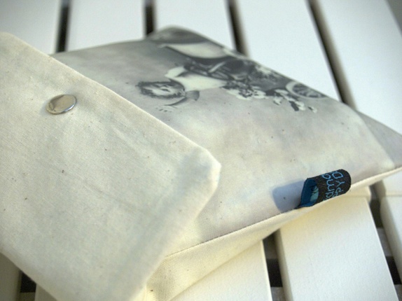 100% bomull på utsiden. Innsiden er fôret med voksduk. Det gjør at maten holder seg frisk hele dagen og den er enkel å tørke av med en ren fuktig klut.
