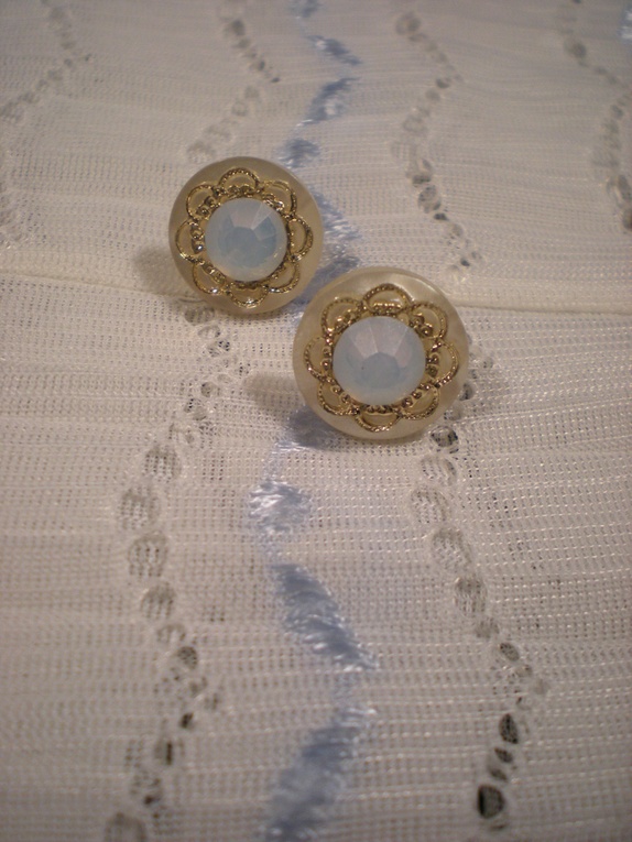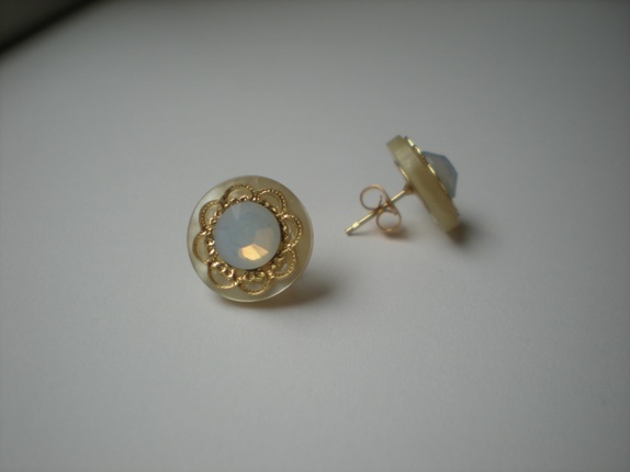 Nydelige kremhvite øredobber med gulldetaljer og hvite, glitrende swarovski stener