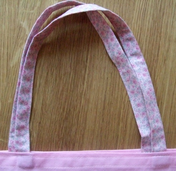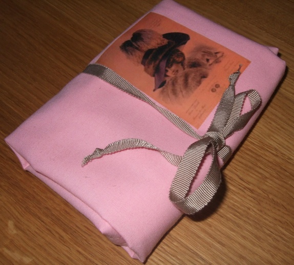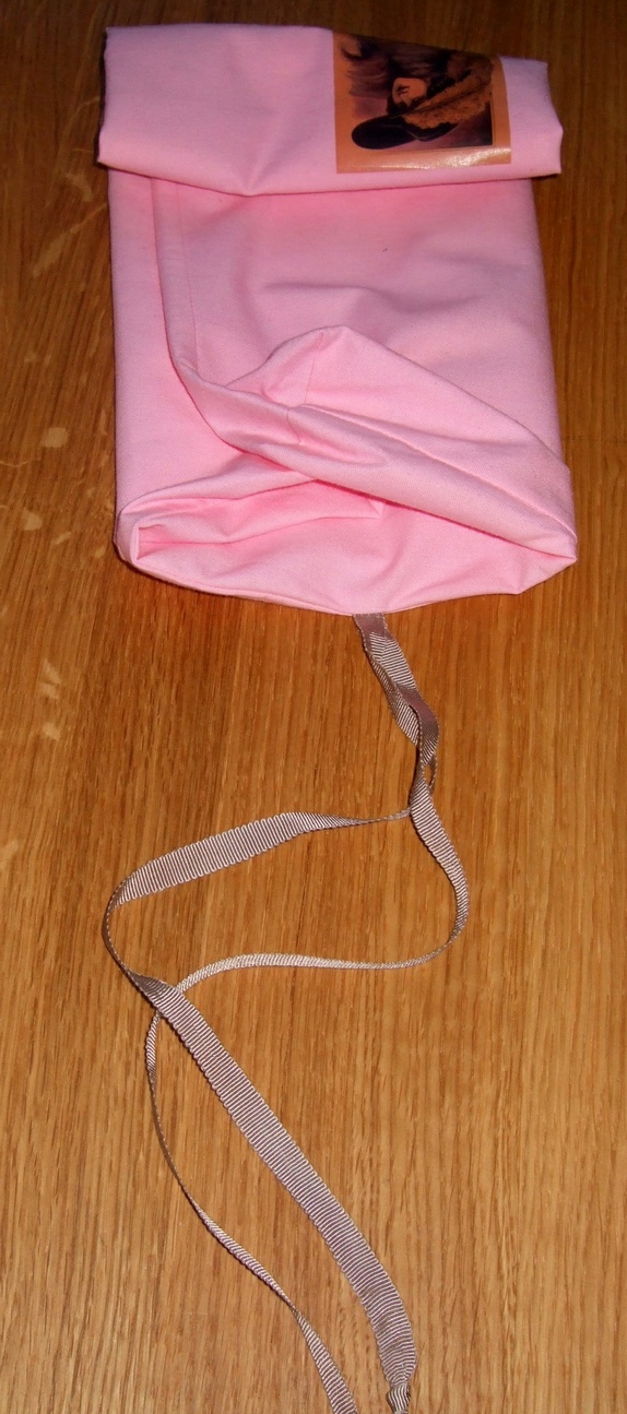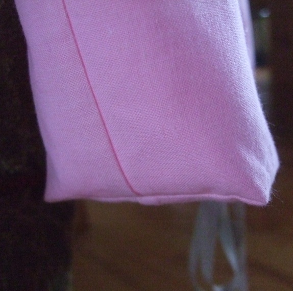 "Nostalgia" er sydd av rosa bomullsstoff med hanker av småblomstrete stoff.