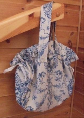 Her er en veske som vil falle i smak! Vesken er veldig romslig og sydd i et utrolig pent englestoff. Fóret.