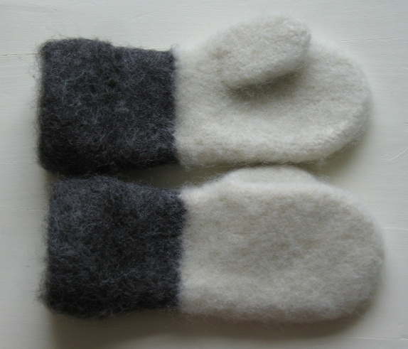 Tykke tovede ullvotter. Hvite og grå.Kan vaskes på ullprogram i maskin.