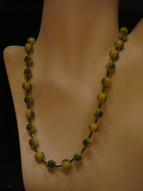 Millefiori glassperler tredd på solid wire