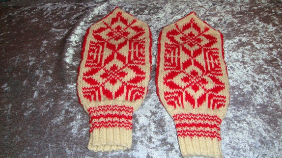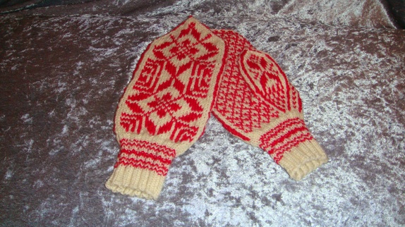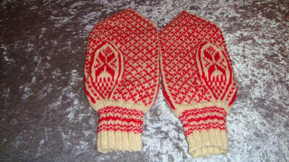 Vottene er håndstrikket i 80% ren ny ull og 20% nylon. Kan vaskes på 40 grader ullprogram i maskinen. Størrelse dame.