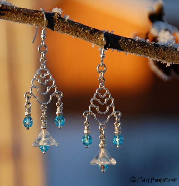 Dette er lange, fine øredobber i herlige, kjølige farger. Jeg regner med det er flere der ute enn meg som elsker kombinasjonen av lyseblått og sølv.