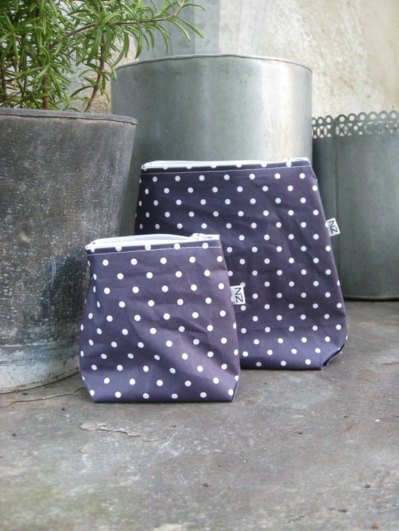 Dyp lilla liten pung med hvite prikker