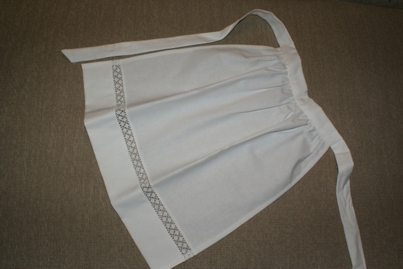 Forkle i 100% bomull med innfelt blonde. Lengde ca 45 cm.