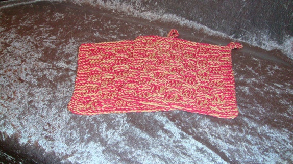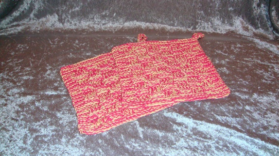 Gryteklutene er hånd strikket i dobbelt rosa og gult 100% bomull garn. Vask 60 grader Størrelse ca 17 * 17 cm Før 70,-