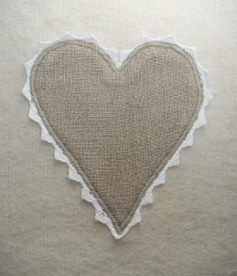 Hjertet er rammet inn av en hvit, vevd bomullsblonde.