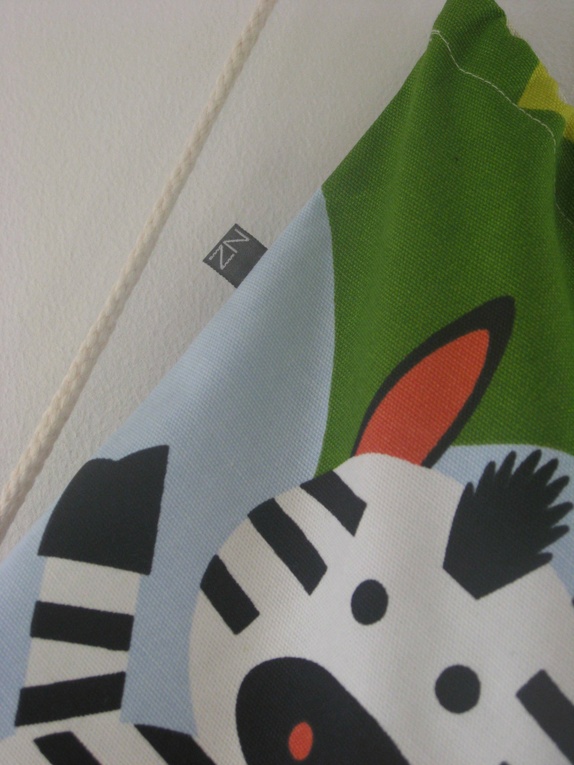 Fargerik, gammeldags gympose sydd i kraftig bomull. Posen har snørelukning med åpning på toppen. Motivet på denne posen er fra jungelen med en zebra, apekatter og andre jungeldyr...