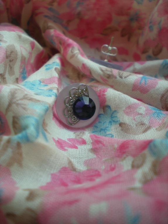 Lys lilla øredobber med sølvfarget viftepynt og lilla store swarovski-stener
