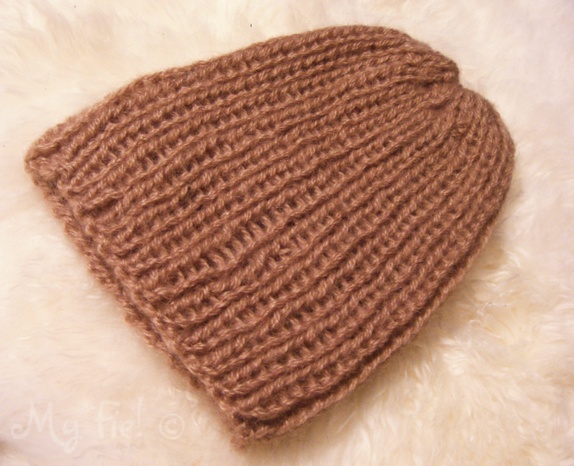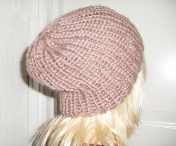 Handstrikka lys brun baskerlua i mohairgarn. De kan også vaskes på ullprogram med milo.