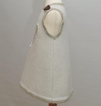 Solid, god og varm vinterkjole sydd av et ensfarget, naturhvitt ullteppe. Kjolen er perfekt til å holde små, kjoleglade frøkner varme på kalde vinterdager, utenpå en genser og en strømpebukse eller bukse.