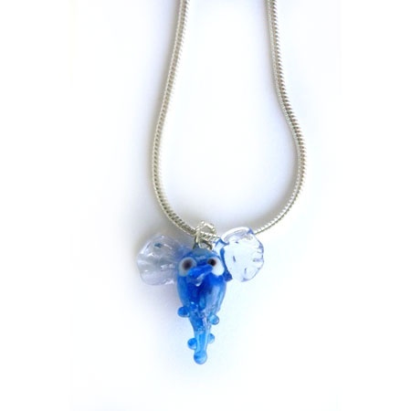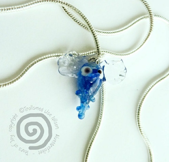 Denne alvetåren er helt blå. Og har gjennomsiktige vinger. Den henger i et kraftig forsølvet kjede.