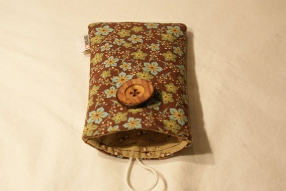 Etuiet er foret med brunt/beige mønstrete bomull stoff.