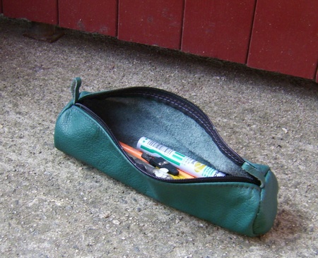 22cm langt i ekte skinn, litt lengre enn de fleste skinnpennaler i butikken. Store og gode hemper i hver ende for enkel åpning og lukking.Ikke foret.