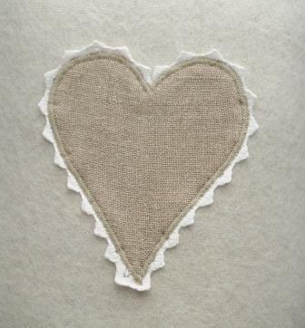 Hjertet er rammet inn av en hvit, vevd bomullsblonde.