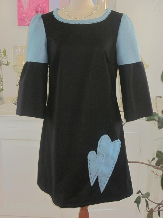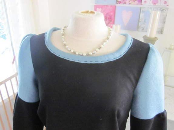 Sort og lyseblå kjole til kalde dager.