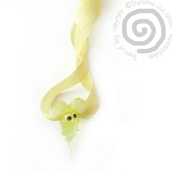 Lysende transparent gul - håndlaget glass alvetårefolk i lilla silkesnor.Det er florlett ekte silke!