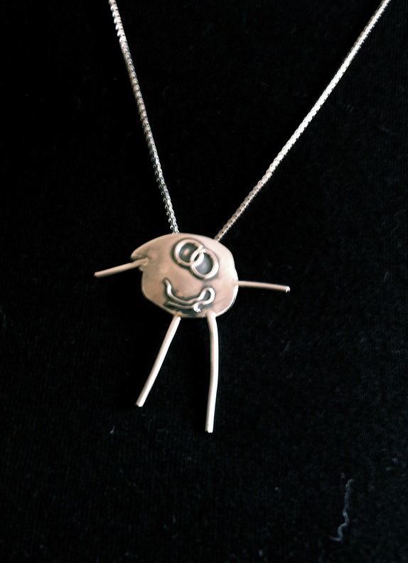 Dette anhenget er i sølv og designet av min 3 år gamle datter.Jeg lager slike anheng på bestilling med ditt barns tegning.Pris vil avhenge av kompleksitet og størrelse. Dette avtales på forhånd