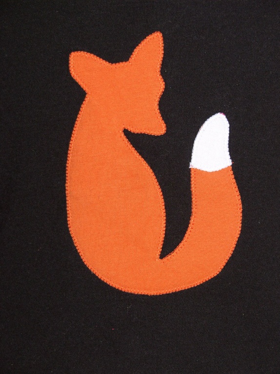 Mikkel Rev er sydd av sort interlock og har orange jerseyarmer med sauer.