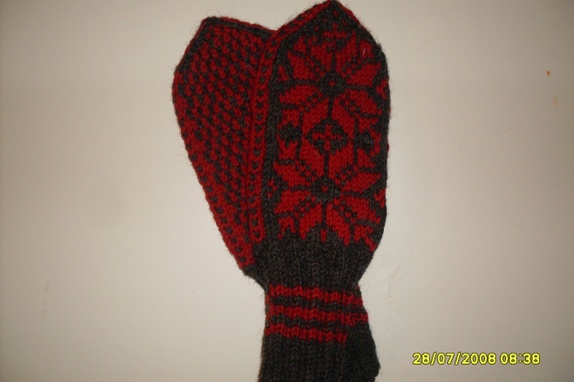 Selbuvotter i 100% ull, håndvask, koksgrå/rød, str dame....