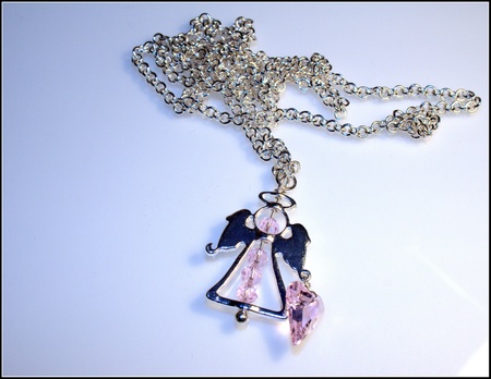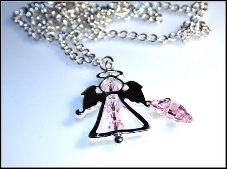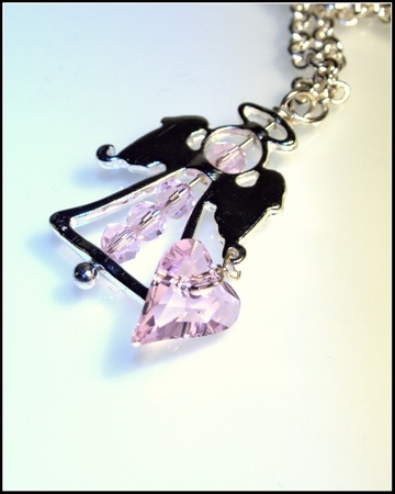 Dette fantastisk søte smykket har en sølvengel med et Swarovski wild heart hjerte i hånden i fargen Rosalin.