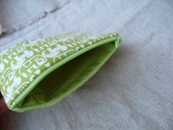 Liten pung laget i bomull. Grønn med elefanter. Foret med lys grønn bomull.